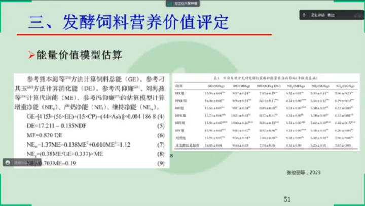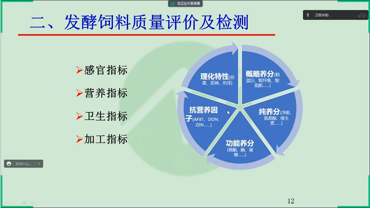 楊教授從發(fā)酵飼料進展概述、發(fā)酵飼料質量評價與檢測以及發(fā)酵飼料營養(yǎng)價值評定三個方面講解了發(fā)酵飼料質量檢測與營養(yǎng)價值評定。